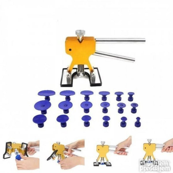 Uklanja oštećenja na limu uzrokovana starenjem i elementarnim nepogodama GradomMože popraviti više vrsta udubljenja! Ispravljanje limarije nikad nije bilo lakše brže i jednostavnije kao s ovim profesionalnim alatom za izvlačenje udubina pomoću ljepljivih pečata
