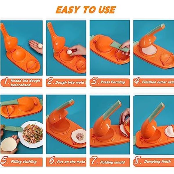 - Lako pravi autentične domaće azijske knedle i drugu džepnu hranu kao sate jela, deserte i grickalice. Može se koristiti i kao aparat za pravljenje knedli, mini pite, kalup za presovanje za raviole.