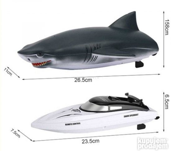 2u1 Ajkula gliser na daljinski super brzi gliser za male trkače koji uzivaju u brzoj vožnji čamaca. Igračka je dva u jednom može da bude samo super brzi gliser ili montirajući se na njega maska ajkule može da bude brza ajkula na daljinski.