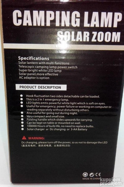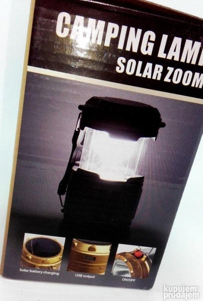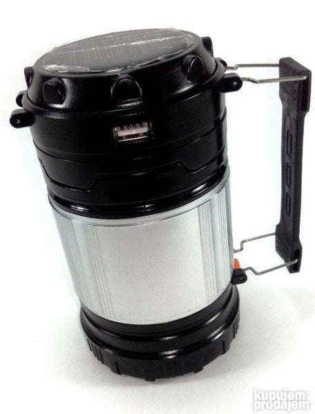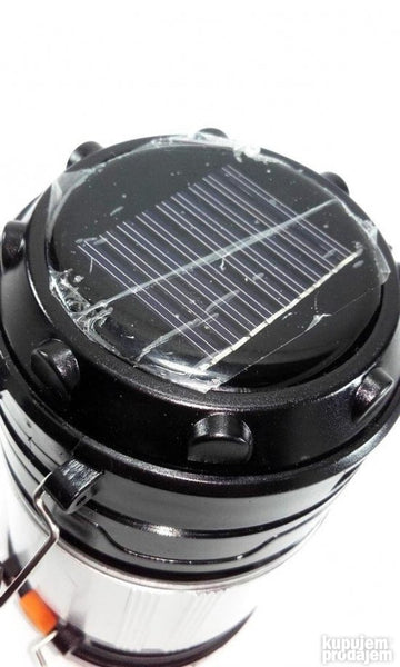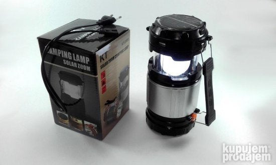 Klasicna kamp fenjer lampa. Kada se skine gornji solarni panel dobija se i baterijska lampa sa led diodama.