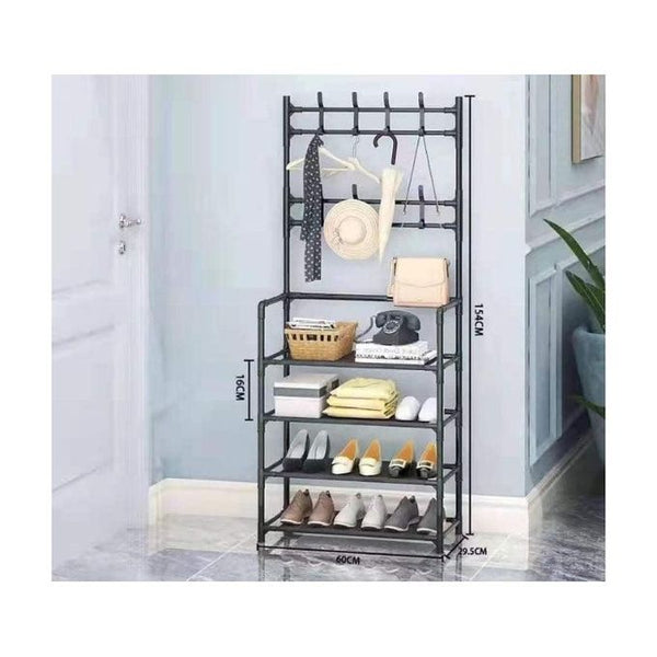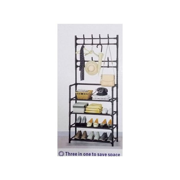 Ukoliko želite da napravite mesta u Vašem domu, ovaj tri u jedan stalak za odeću, obuću i čiviluk će Vam u tome pomoći. Veoma je praktičan, lako se sklapa i lako održava čistim. Napravljen je od visokokvalitetnog metala te ne morate brinuti o njegovoj stabilnosti. Njegove dimenzije su visina 160cm, širina 60cm, dubina 26cm.