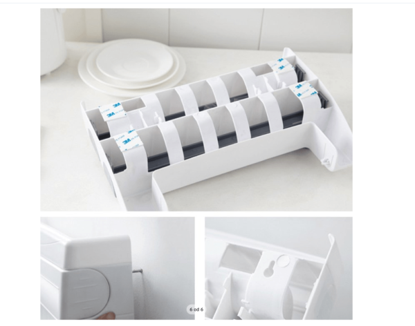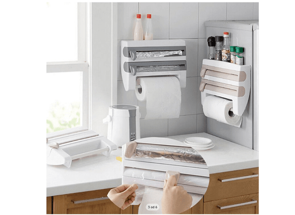 – Raspolaže sa tri mesta za: alu foliju, prijanjajuću (plastičnu) foliju i kuhinjski ubrus. – Može se držati i papir za pečenje.