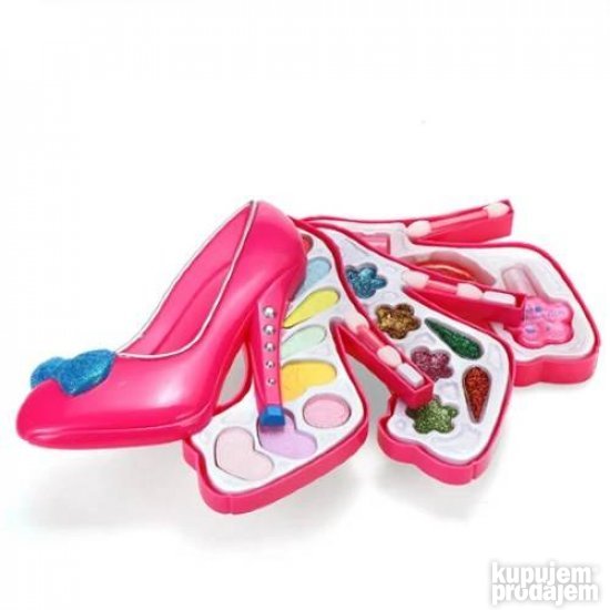 Sklapajući set šminke u 3nivoa. Sve je međusobno spojeno kada se sklopi bude kutija u obliku cipelice.