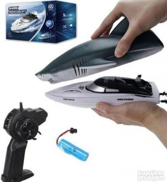2u1 Ajkula gliser na daljinski super brzi gliser za male trkače koji uzivaju u brzoj vožnji čamaca. Igračka je dva u jednom može da bude samo super brzi gliser ili montirajući se na njega maska ajkule može da bude brza ajkula na daljinski.