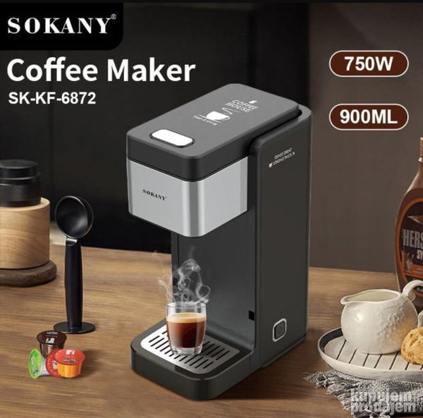 SK-KF-6871 VELIČINA KUTIJE: 498 * 37 * 394 cm 2 u 1 multifunkcionalni: kuvati sa jednom serviranjem K-CUP mahuna ili mlevena kafa Kontejner za vodu od 900 ml Podesiva visina posude za kapanje