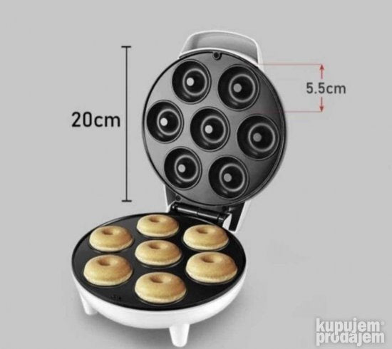 Zagrejte aparat sipajte testo sačekajte nekoliko minuta i onda izvadite savršene mini krofne! DSP Donut Maker je aparat za krofne koja vam olakšava pravljenje malih krofni kod kuće! Možete umakati svoje krofne u glazuru i prskalice bombone voće čokoladu . . Pravi sedam mini krofni odjednom . Veličina mašine za krofne: 20 cm u prečniku. Lako se čisti. Lampe koje pokazuju da li je aparat za krofne priključena i dovoljno topla. Povezuje se na električnu utičnicu.