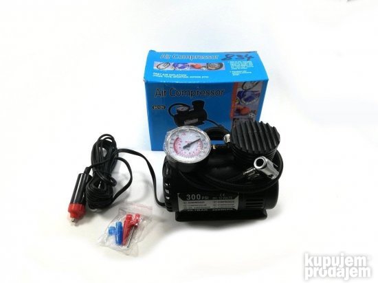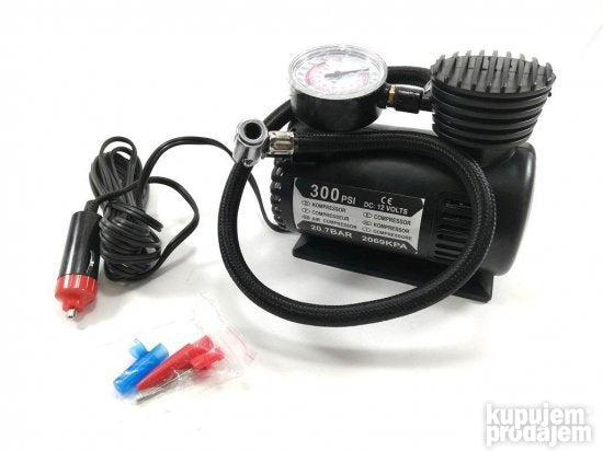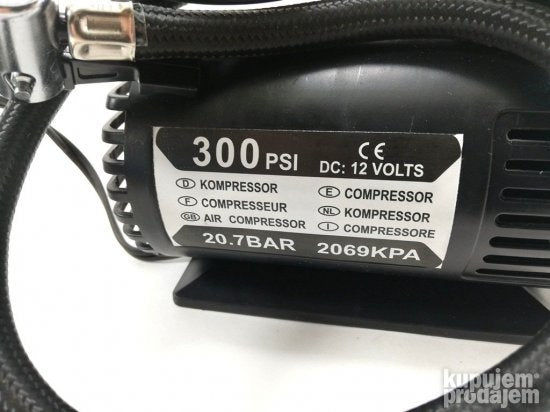 Kompresor za pumpanje guma se povezuje na auto upaljač. Uz kompresor dolaze i plastični nastavci. Malih je dimenzija. Visine 12cm dužine 13.5cm i širine 7.3cm duzina creva 50cm duzina kabla Jačina: 20.7 BAR=======