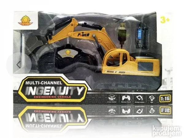 Specifikacije O ovom proizvodu INGENUITI rovokopač-utovarivač RAZMERA 1:16 Ako je vaš mališan zaljubljenik u radna vozila ne možete prestati da mu dajete ovo sjajno inženjersko vozilo na daljinsko upravljanje koje simulira kretanje materijala za izvlačenje. Fini detalji čine ovu igračku idealnim poklonom za vašu decu. Kašika i gornji poklopac su metalni i ima sijalicu koja ga čini upečatljivijim. Takođe ima kretanje od 360 ° u celoj kabini. Uključuje punjivu bateriju sa svojim USB punjačem za vozilo i 2 AA baterije za kontrolu. Materijali: plastika i metal. Dimenzije pakovanja: visina 19 cm k 32 cm dužina k širina 10 cm. Dimenzije vozila: visina 16 cm k 25 cm dužina k širina 9 cm.