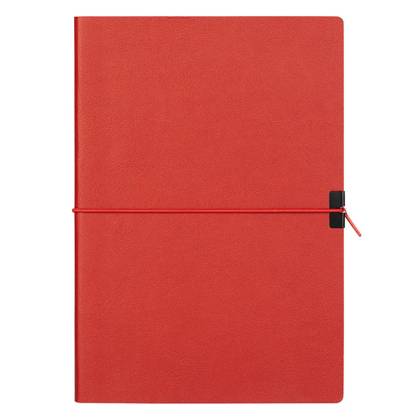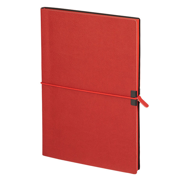 Notes sa fleksibilnom koricom, zaobljenim ivicama, bojenom ivicom knjižnog bloka u boji korice, crnim predlistom i elastičnom gumicom sa dodatkom za povlačenje