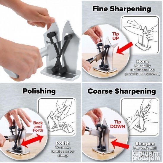 Za samo nekoliko sekundi vaši stari noževi će biti naoštreni obrušeni ispolirani i pretvoreni u oštra sečiva za rezanje