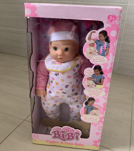 Jako zanimljiv model lutke-beba koja raste, place, smeje se, otvara i zatvara oci, ljuti se ukoliko ne dobije flasicu sa mlekom. . Ova igracka je napravljena od kvalitetne gume, dolazi u jako lepom pakovanju, idealna za poklon.