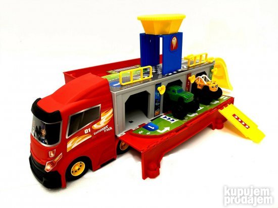 Kamion u kojem su postavljene staze i bočni zid za izlaz automobila i tobogan.