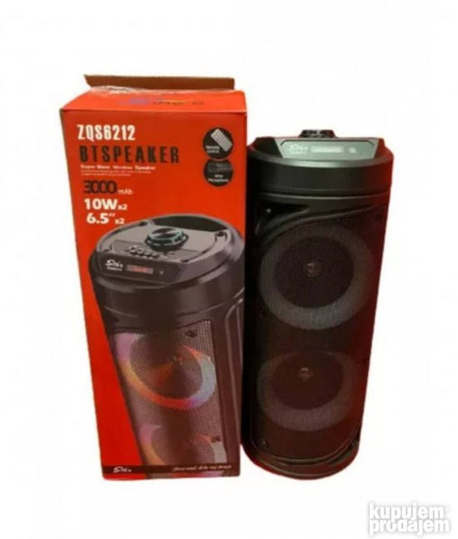 Prenosni zvučnik ZKS6212 je odličan prenosivi zvučnik visokog kvaliteta i glasnog zvuka. Napravljen je za one koji ne mogu da zamisle odmor bez omiljene muzike. Savršen je za ljubitelje planinarenja rekreacije na otvorenom ili vikendica. Stub je relativno male težine i lako se može smestiti u prtljažnik ili na zadnje sedište automobila. Izvor signala za ZKS6212 može biti bilo koji digitalni izvor zvuka koji ima Bluetooth interfejs USB stick ili TF memorijsku karticu (aka SD). Pored toga uređaj može da pojača signale sa žičanog mikrofona koji se isporučuje sa kompletom ili bilo kog analognog izvora zvuka povezanog preko stereo utičnice prečnika 35 mm. Uređaj takođe ima ugrađen FM radio prijemnik zvučnik može da radi u karaoke režimu. ZKS6212 se može lako i intuitivno upravljati preko kontrolne table ili isporučenog daljinskog upravljača. Glavne karakteristike : Performanse: - DIN 20 V - RMS 35V - PMPO 200V Dimenzije: visina - 50 cm širina - 20 cm debljina - 20 cm Bežični interfejsi: Bluetooth 5.0 Izlazni interfejsi: AUKS USB SD kartica Pozadinsko osvetljenje: Da Materijal kućišta: plastika Frekvencijski odziv Hz: 60Hz-23KHz Napon napajanja: 3.7V Kapacitet baterije: 3000 mAh Vreme rada: 5-6 sati Domet priključka: 10 m.