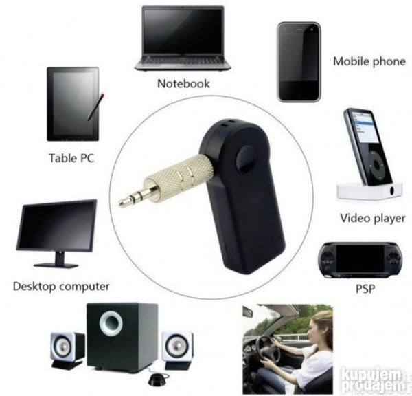 Audio receiver (risiver prijemnik) stereo zvuka ima domet 10m komunikacija preko Bluetooth v2.1+EDR ili jača na Vašem Android iOS ili Windows smartphoneu ili tabeltu i svakom drugom uređaju koji može da preko Bluetooth veze prenese zvuk.