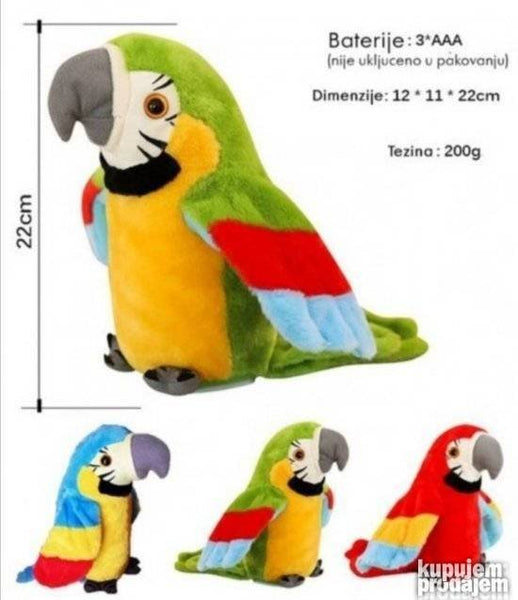 Brbljivi plisani papagaj koji ponavlja reci za vama je igračka koja će sve sto izgovorite svaki zvuk reći smeh ponoviti na svoj jedinstven način.