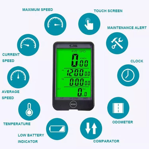 - 27 funkcija: DST UDALJENOST, MAKSIMALNA BRZINA MXS, AVS PROSEČNA BRZINA, TM UKUPNO VREME PUTOVANJA, TM VREME PUTOVANJA, CLK SAT (12H / 24H), SW STOPWATCH, TEMPERATURA, KOMPAPATOR, PODSETNIK ZA ODRŽAVANJE, PODSETNIK ZA VELIKU BRZINU, INDIKATOR ZA BATERIJU, SKALE (KM/ H,M / H)…