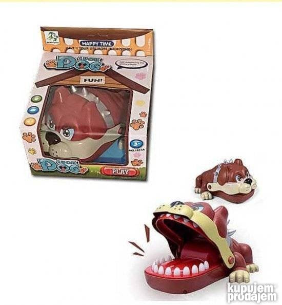 Bulldog zubici društvena igra za male i velike. Buldog ima zubobolju – ali koji zub ga boli …? Izazovite sebe ili drugare i pregledajte mu u zube. Pregledaj mu zub po zub ali pazi nemoj slučajno da ga pipneš za onog koji ga boli. Kada pipneš bolan zub pas zatvori usta u nekoliko sekundi i ugrize. Nakon što ponovo otvori usta shvatićete da ga boli još jedan zub … Šta bi moglo biti ovog puta? Svaki zub je uzbudljivo iznenađenje. Pobednik je zubar koga pas ni jednom nije ugrizao.