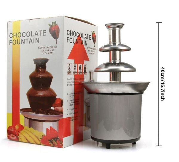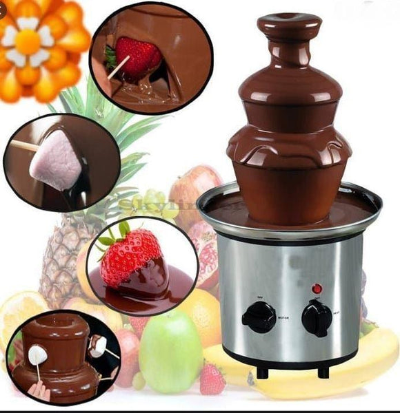 Odlicna cokoladna fontana sa tri sloja. Ona je zabavna, intrigantna i pruža nam zadovoljstvo da se zasladimo! Banane, jagode, maline, višnje, trešnje ili neko drugo voće – izaberite i prepustite se uživanju!