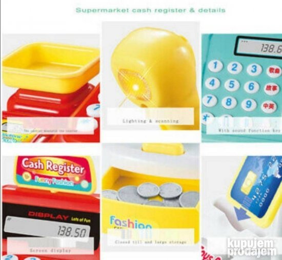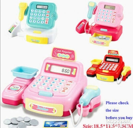 Registar kasa za decu sa barkod čitačem sjajna igračka za vaše mališane. Igračka koja idealno simura registar kasu tako da deca mogu da se igraju trgovine sa njom. U setu pored registar kase sa bar kod čitačem i papirnom trakom koja se odmotava idu i fioka za novac koja se otvara papirni i plastični novac plastična kartica za plaćanje.