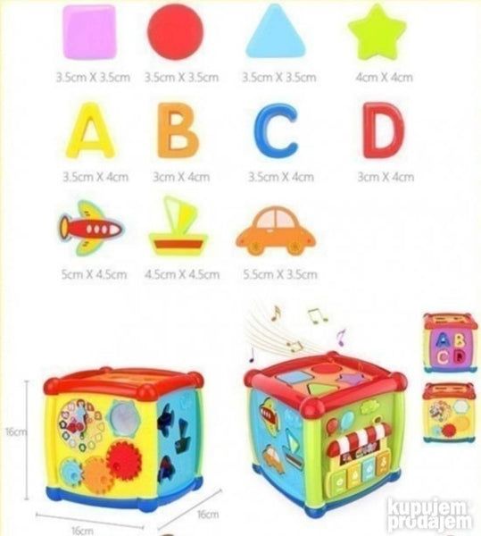 Decija edukativna kocka 6u1 je multimedijalna i multifunkcionalna igracka sa fantasticnim mogucnostima za obrazovanje dece i prvim susretanjem deteta sa: