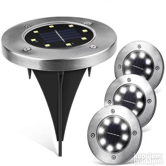 Solarna svetla za dvoriste su prakticno resenje za uredjivanje Vaseg dvorista. Savrseno ce osvetliti Vase dvoriste, cvece, travu, staze… Set se sastoji od 4 svetla u obliku diska. Svaki disk ima 8 led sijalica u svakom disku. Ne koristi elektricnu energiju, nisu potrebne cak ni baterije, napaja se solarnom energijom.