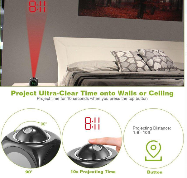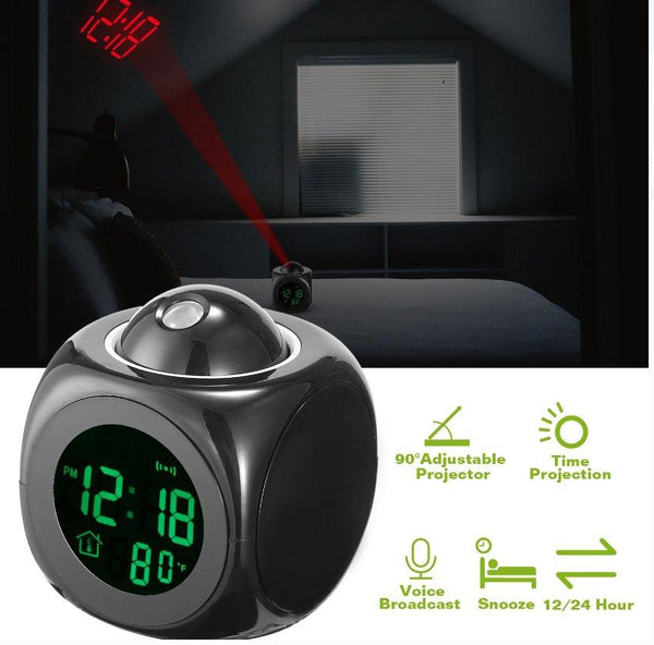 Jako zanimljiv model sata, modernog dizajna, prkazuje vreme, temperaturu i alarm ako ste podesili. Ima ugradjenu led lampu koja sija na plafonu ili zidu. Za rad je potrebno tri baterije.