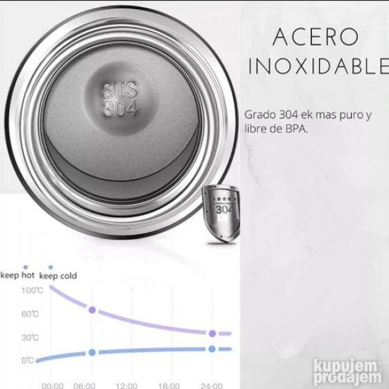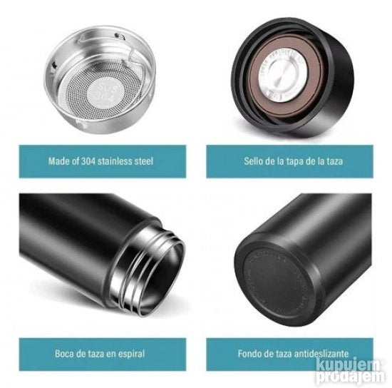 Vreme održavanja temperature: 1. Topla voda iznad 72° C može da se drži 6 sati. (U termos šolju sipajte toplu vodu od 85° C nakon najmanje 6 sati topla voda u termos šolji će se i dalje održavati na oko 60° C) 2. Topla voda na oko 50 ℃ može se držati 12 sati 3. Hladna voda može da ostane topla 12 sati dodavanjem kockica leda. Karakteristike i funkcije proizvoda: 1. Veliki i jasno vidljiv digitalni displej on će pokazati temperaturu sadržaja proizvoda displej se automatski isključuje za 3-4 sekunde mirovanja. 2. Unutra se nalazi pametni čip sa režimom za uštedu energije. 3. Nema potrebe za punjenjem može se koristiti više od 50000 puta dug vek baterije od 1800 dana. 4. Ima odličnu toplotnu izolaciju skoro nikakva temperatura se neće osetiti kada dodirnete telo boce kada punite toplu vodu zato pazite da ne opečete usta kada pijete nakon punjenja tople vode. 5. Dobra hermetičnost voda neće lako curiti izdržljiva i jaka. 6. Unutra se nalazi filter za curenje čaja. Okrenite čašu naopako i pustite da voda dodirne poklopac da pokaže temperaturu unutra. 7. Kada nema vode u boci biće prikazana temperatura okoline. Pošto je senzor temperature ovog proizvoda unutra i izolovan od spoljašnjeg vazduha može doći do odstupanja pri merenju spoljne temperature kada je poklopac zatvoren ali temperatura u boci je tačna! Lično testiram da je minimalna temperatura -18 stepeni Celzijusa (u frižideru) a maksimalna temperatura 89 stepeni Celzijusa (topla voda napunjena u dozator za vodu). Ne isključuje se da neki prijatelji imaju bolje uslove testiranja i dobijaju više ili niže temperature! Funkcija inteligentne izolacione čaše: 1. Može vam pružiti toplinu u hladnoj zimi tako da svoje tople napitke možete piti bilo kada i bilo gde. 2. Tokom vrelog leta ovaj proizvod takođe zadržava hladnoću tako da možete piti hladnu vodu bilo kada i bilo gde da biste ublažili toplotu.