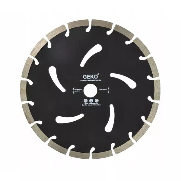 Dijamantska rezna ploča 230mm, napravljena od veoma kvalitetnih materijala i koristeći modernu tehnologiju, koja daje sečivu duži vek trajanja i brži rad uz minimalne vibracije i visok stepen stabilnosti, segmenti namenjeni za hlađenje pomažu dotok hladnog vazduha i šalju prašinu izvan zone sečenja samim tim specijalni dizajn rezne ploče omogućava bolje hlađenje.