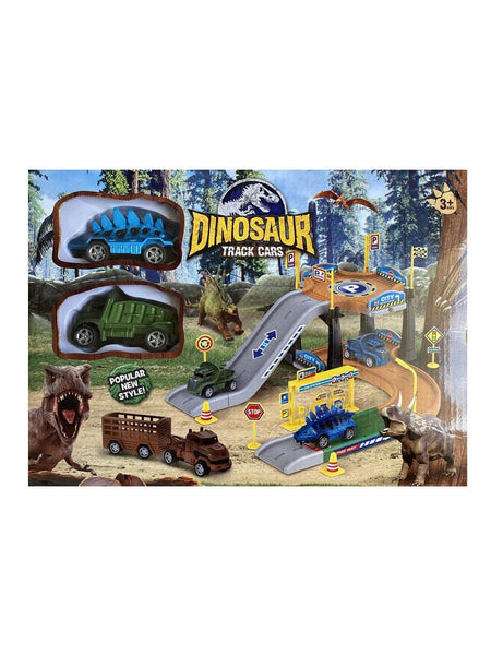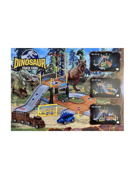 Set Dino park garaza koji se sklapa obradovace svakog malog decaka avanturistu, obozavaoca doba Jure kada su zemljom hodali ovi neverovatni reptili. U setu se pored staze koja se sklapa nalaze i pumpa, saobracajni znaci, 2 autica koja se krecu na potez unazad koji su izradjeni u tadasnjem stilu. Njihove dimenzije su duzina 7cm, sirina 4cm i visina 4cm.U kompletu se dobijaju i pratece nalepnice. Set je prilagodjen uzrastu 3+.