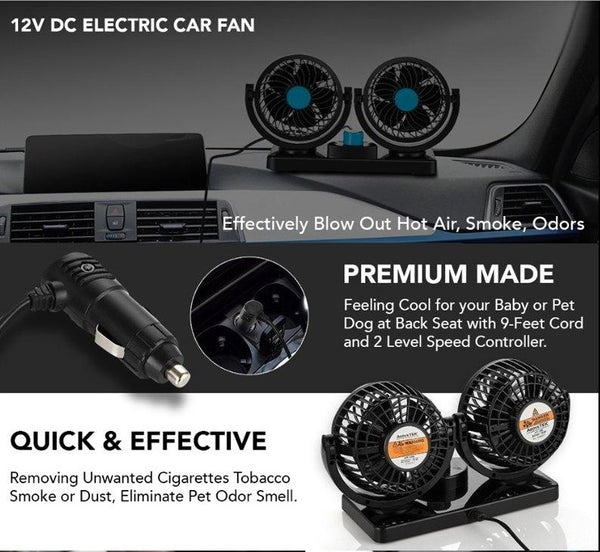 Odlican izbor ventilatora za automobil sa dizjnom bezbednim za decu. Vrhunskog dizajna, ovaj ventilator od 12V efikasno izbacuje vruc vazduh iz vase auto kabine, poboljsava cirkulaciju i kvalitet vazduha. Moze da se okrece, rotira 360 stepeni. , brzinu da prilagodi na dva nivoa.