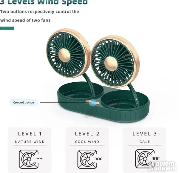 ŠIROKA UPOTREBA Ventilator koristi 5V 2A USB napajanje tako da osim u automobilima može se koristiti iu kancelariji i kući.