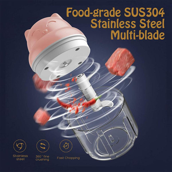 Ovaj secko zanimljivog dizajna Vam pruža ekonomično i brzo sečenje. Električni rad, opremljen snažnim motorom snage 30V, vrlo brzo seče velike komade voća, povrća, mesa bez kostiju, začinskog bilja, orašastih plodova i začina u sekundi. Lako se čisti – sa odvojivim sečivima, posudom i poklopcem, ova električna seckalica za hranu se takođe vrlo lako čisti i pere odvojeno.v