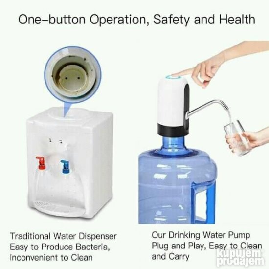 Gotovo je s podizanjem teških i velikih flaša radi punjenja čaša i manjih flaša! Samo pritisnite prekidač on će ispustiti vodu s upaljenim plavim svetlom a crveno će svetliti kada se puni. Sa jednim pritiskom oko 1700 ml vode u 30 sekundi pruža mnogo pogodnosti.