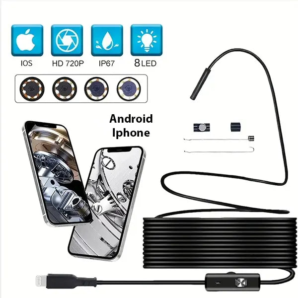 Endoskop HD kamera 5 metra jednostavno istraži nepristupačna ili teško vidljiva područja kao što su odvodne cevi, motori automobila, ventilacijske cevi itd. Proširi vidokrug i pogledaj nemoguće, sa endoskopom možeš pogledati većinu teško vidljivih područja.