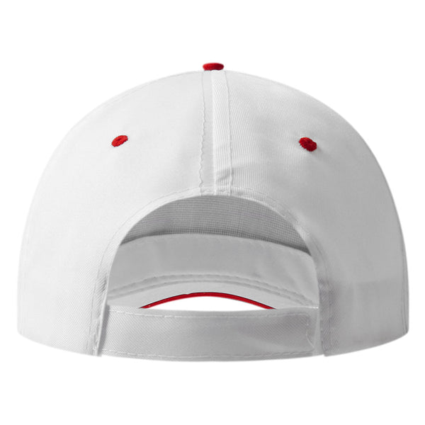 Kačket sa 5 panela, bela osnova sa obojenom ivicom, ventilacionim otvorima I dugmetom, čičak kopča