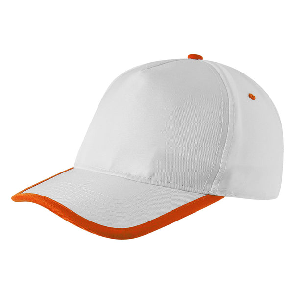 Kačket sa 5 panela, bela osnova sa obojenom ivicom, ventilacionim otvorima I dugmetom, čičak kopča
