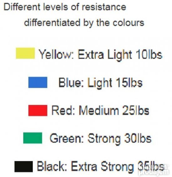 Pover Pack se sastoji od 5 traka u boji: 15.10.25 / 30 / 15.9kg tako da možete fleksibilno prilagoditi intenzitet treninga.