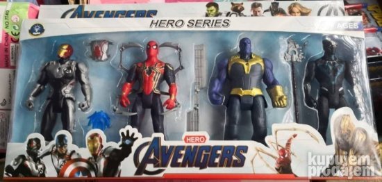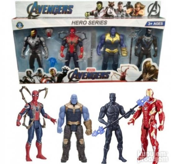 U setu dobijate Ironmena Iron spidermana Thanusa   Black panther i njihova oružja