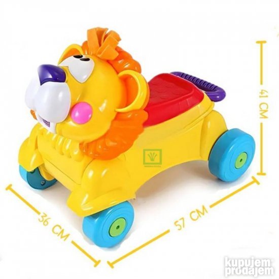 Lion Valker Valker - Fisher Price • Ovo označava vožnju Valkera u igri i daje bebi veliku evolucionu prednost. • U režimu šetača za bebe imate veliko međuosovinsko rastojanje i veliku ručku da biste lakše započeli. • Muzika svetla i lavlji zvuci stimulišu i nagrađuju bebu kada hoda po kući ili kada beba pritisne lavlji nos. • Kada je beba spremna samo spustite lavlji rep i pretvorite hodalicu u vozača na brodu. • U režimu vožnje za bebe imate veliko sedište za sedenje i dovoljno mesta za ruke iza lavlje meke dlake oko ušiju. Težina proizvoda 334 kg. Dimenzije proizvoda 41 k 58 k 225 cm. Baterije: 3 AA potrebne. Preporučena minimalna starost (od strane proizvođača) 9 meseci i više.