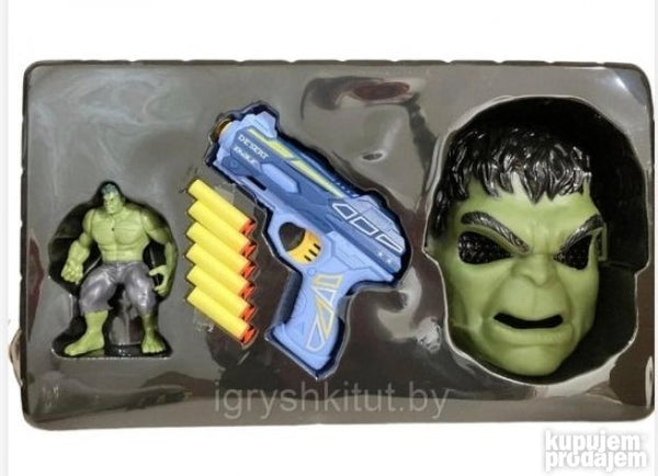 Set za igru Hulk sastoji se od figure heroja maske oružja. Igračka je napravljena od kvalitetne i izdržljive plastike. Klinac će se rado igrati sa ovim kompletom zamišljajući sebe kao pravog člana tima Osvetnika.