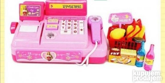 Igracka kasa muzicka za igranje svetleca na baterije. Uz kasu se dobija prateca oprema za igranje plus plasticna korpa .