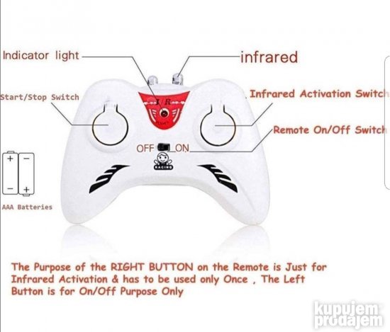 Letelica namenjena za decu i odrasle sa ugradjenim IR senzorom samim tim letelica ako naidje na prepreku letelica se podize ili podmetanjem dlana!
