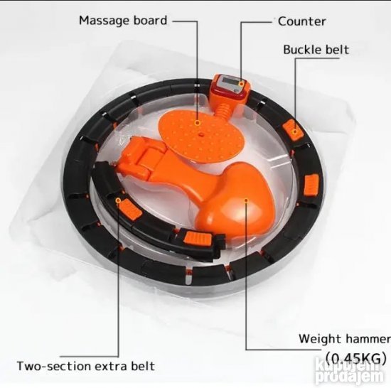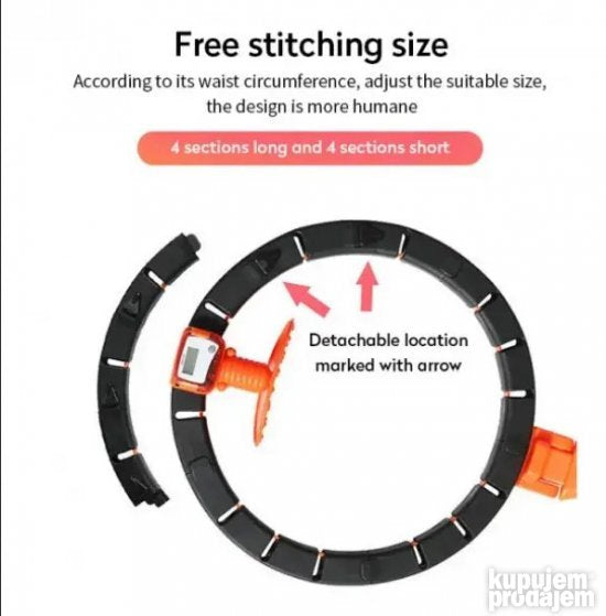 Ova traka oko struka za fitnes sastoji se od delova koji mogu povećati ili smanjiti svoj obim u zavisnosti od veličine struka. Da biste sastavili ovaj mehanizam jednostavno spojite delove jedan sa drugim zajedno sa LCD ekranom. Zatim gurnite centrifugalnu kuglu spolja i pričvrstite potpornu podlogu iznutra. Vežbe sa obručem pomažu u brzom sagorevanju masti smanjenju obima struka i ublažavanju umora! Sagoreva dva do tri puta više kalorija nego običan obruč!
