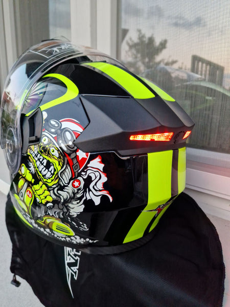 U sklopu kacige se nalaze (integrisane) naocare za sunce koje možete da podižete i spuštate po potrebi