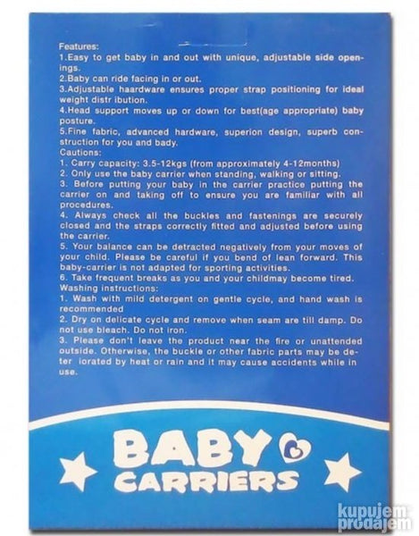 Ova kengur nosiljka za bebe predviđena je za uzrast od 4-12 meseci i težinu od 35-12 kilograma