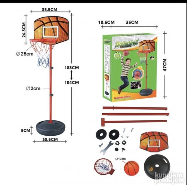 Obezbedite adekvatnu fizičku aktivnost svom detetu čak i u sobnim uslovima! Ovaj interesantan i vrlo kvalitetan koš za decu obradovaće svakog mališana. Stub je podesiv a postolje je predviđeno da se napuni peskom vodom ili drugim materijalom radi stabilnosti. Lako se namešta a isto tako se lako i sklapa te ga možete poneti svuda sa sobom. Deca će razviti svoje motoričke sposobnosti i ljubav prema sportu što predstavlja pun pogodak za potrebe mališana. Pruža veliki broj mogućnosti za samostalnu igru igru u paru ili čak timsku igru