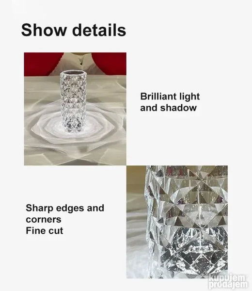 Prozirni akrilni materijal smanjuje težinu bez gubitka teksture a takođe čini telo lampe transparentnijim.
