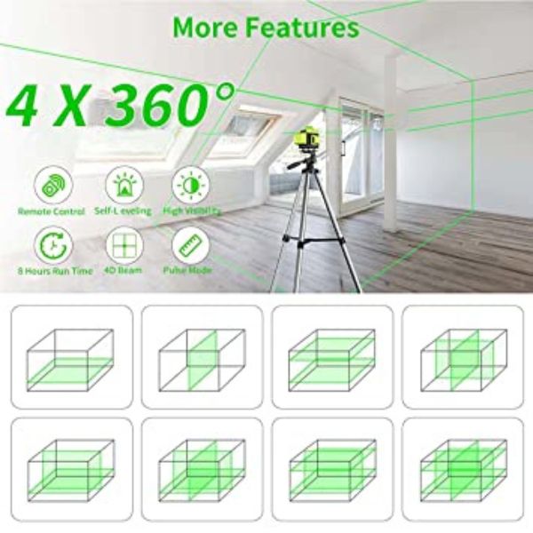- Laser je odlican za NIVELACIJU zato sto moze u isto vreme da baca linije na sve strane 360stepeni i dolazi sa postoljem i sa stalkom sa magnetom za radove sa rigipsom