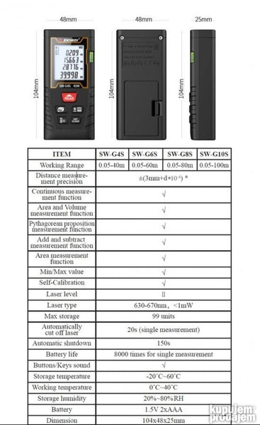 - Laserski metar za merenje sa dosta dodatnih funkcija i displejem