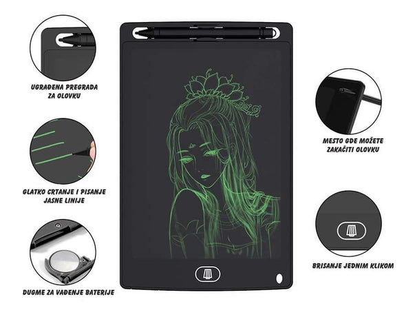 ● Prikladan je za pisanje pomoću prsta i lako ga možete obrisati pritiskom na dugme, dobijate i olovku za pisanje